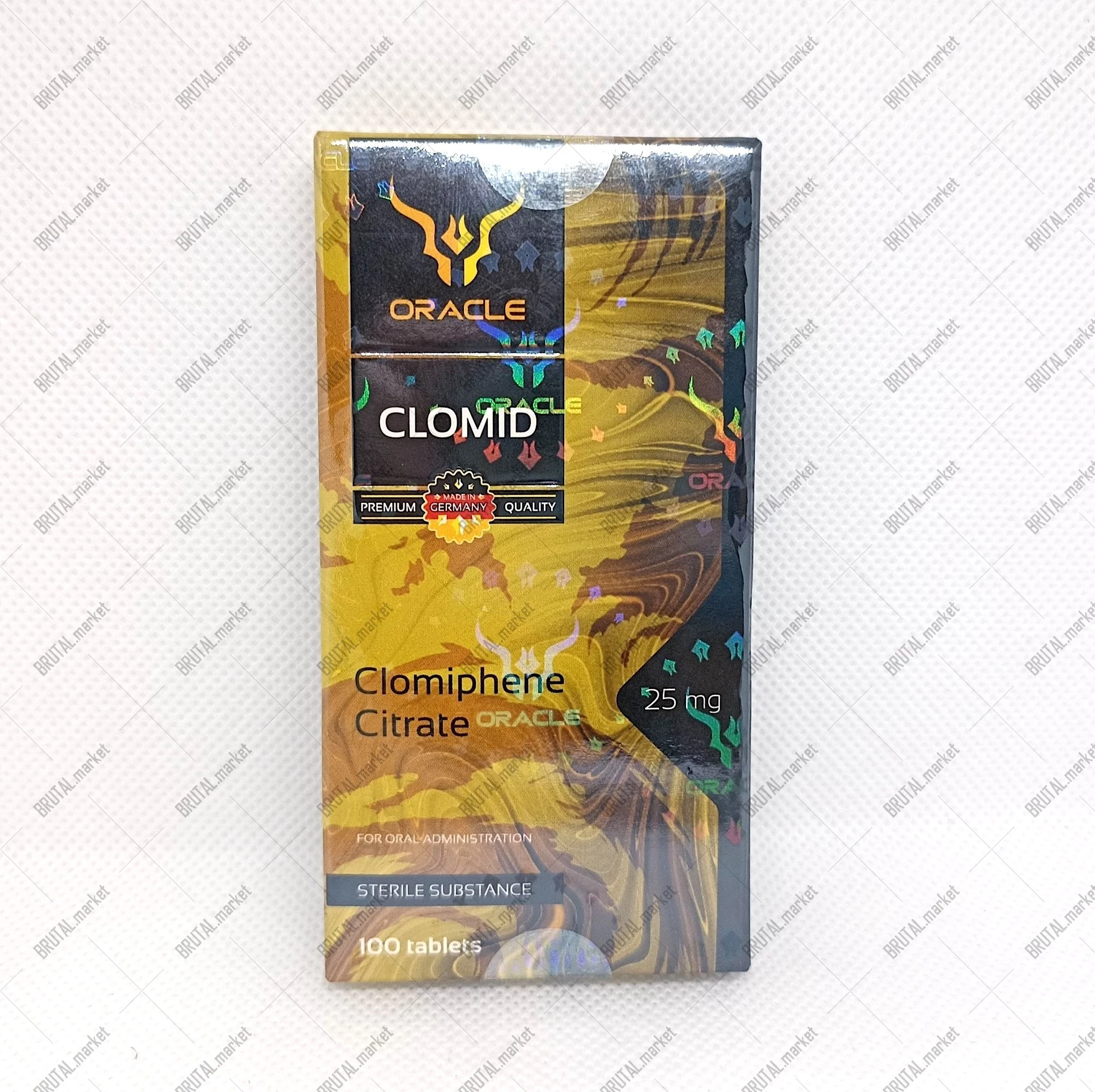 Clomid (Oracle) — препарат на основе кломифена цитрата, относящийся к группе селективных модуляторов эстрогеновых рецепторов (SERM). Широко применяется в спортивной фармакологии для восстановления собственной выработки тестостерона после курсов анаболических препаратов.