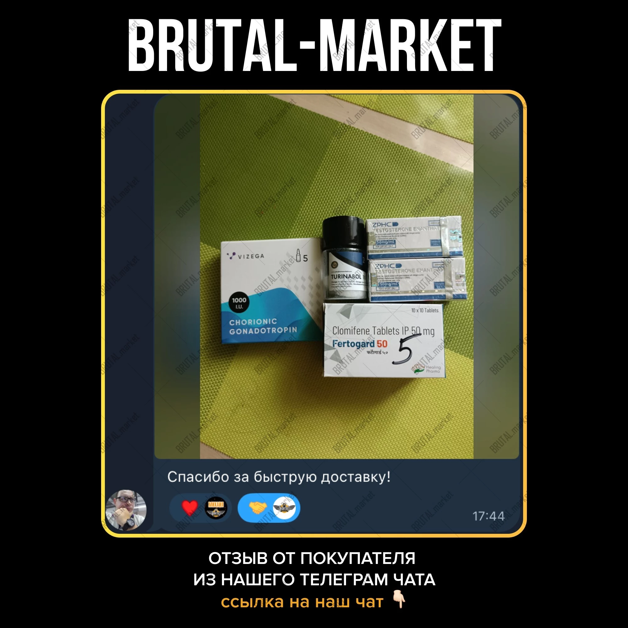 Чтобы купить Кломид, просто оставайтесь на страницах интернет-магазина Брутал Маркет. Мы предлагаем качественную оригинальную продукцию, имеющую необходимые сертификаты. Цена таблеток в нашем магазине на порядок ниже стоимости аналогов в аптеках Москвы. Кроме того, в последнем варианте вы рискуете купить не просто дженерик, а дешевую подделку. Поэтому Clomed лучше заказать у нас. На курсе подключаем ХГЧ и после Каберголин.