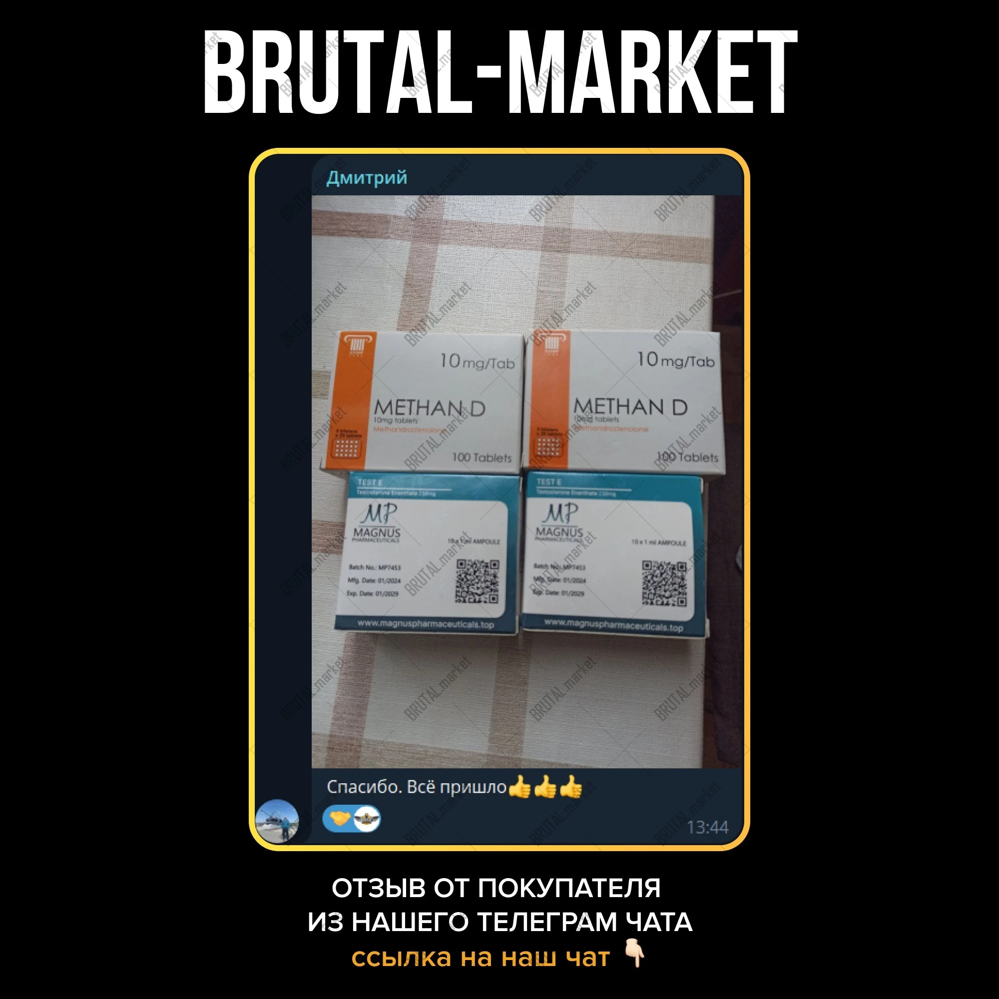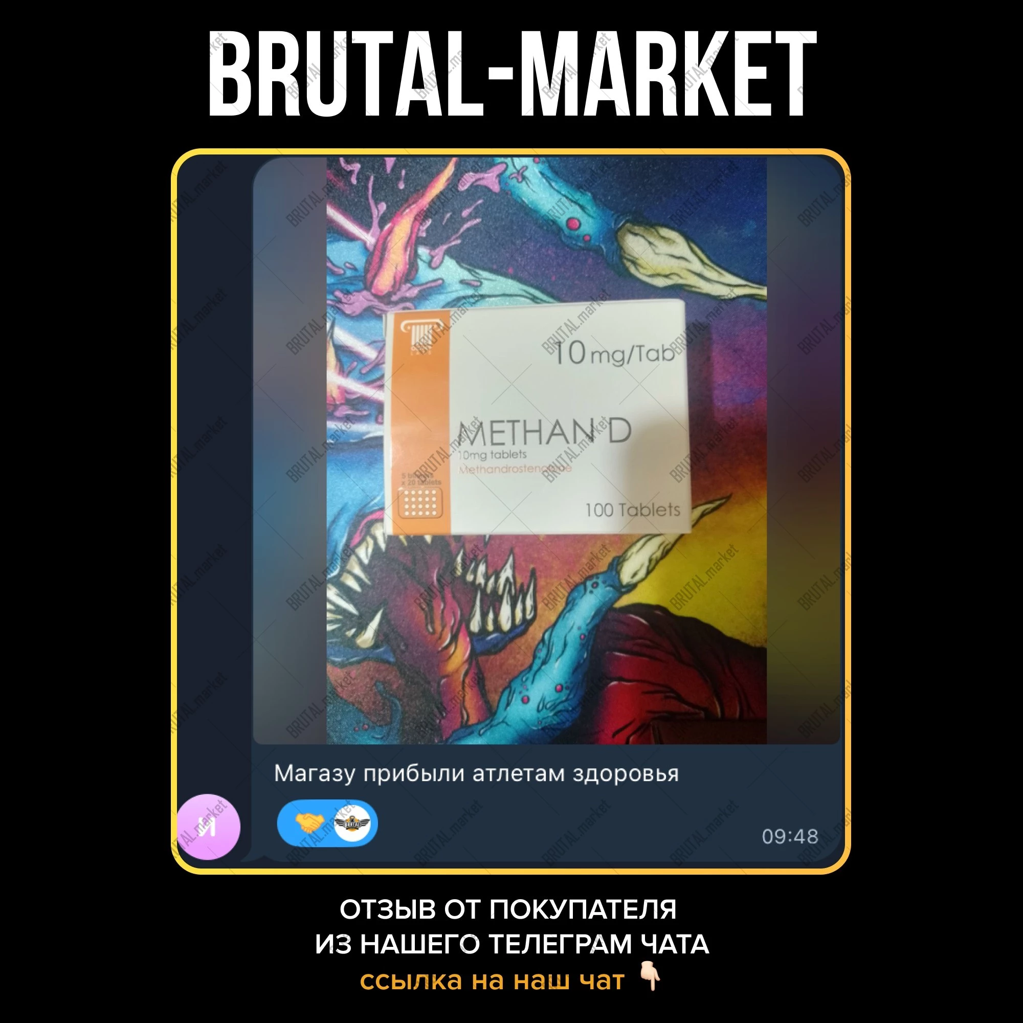 Магазин Brutal Market представляет вашему вниманию широкий спектр оригинального и эффективного ассортимента. Покупку оригинального препарата Вы можете осуществить на нашем сайте с приятными для глаз ценами, хорошими отзывами на ветках тематических форумов, а также с доставкой по всем регионам РФ в кротчайшие сроки.