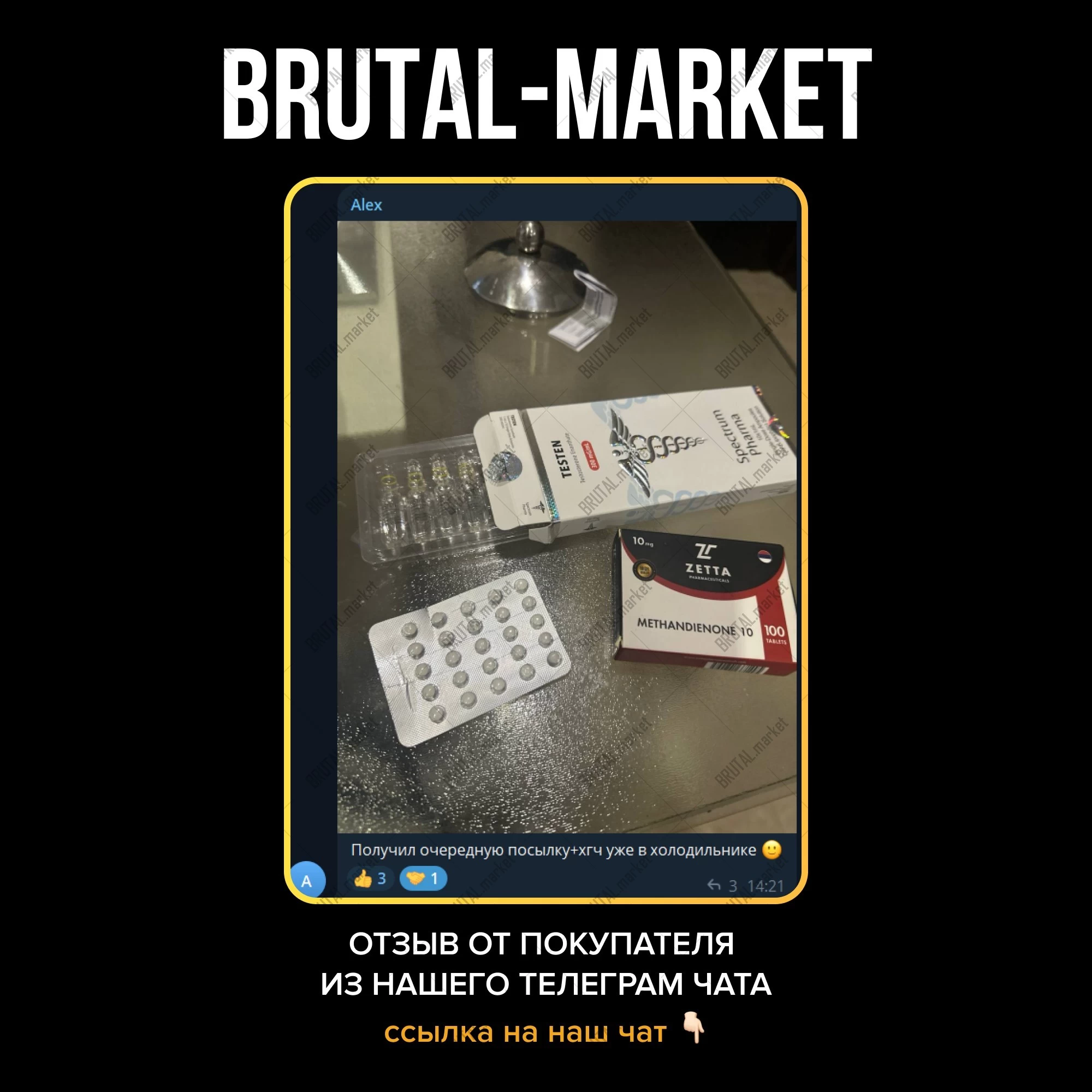 Магазин Brutal Market представляет вашему вниманию широкий спектр оригинального и эффективного ассортимента. Покупку оригинального препарата Вы можете осуществить на нашем сайте с приятными для глаз ценами, хорошими отзывами на ветках тематических форумов, а также с доставкой по всем регионам РФ в кротчайшие сроки.