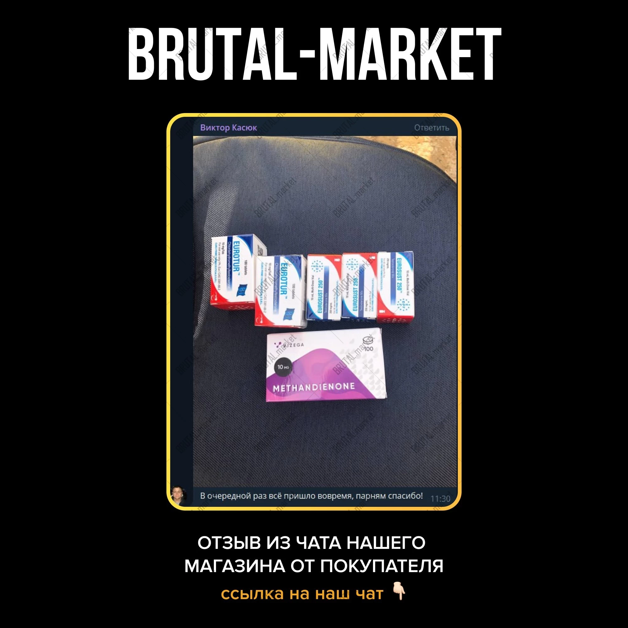 Магазин Brutal Market представляет вашему вниманию широкий спектр оригинального и эффективного ассортимента. Покупку оригинального препарата Вы можете осуществить на нашем сайте с приятными для глаз ценами, хорошими отзывами на ветках тематических форумов, а также с доставкой по всем регионам РФ в кротчайшие сроки.