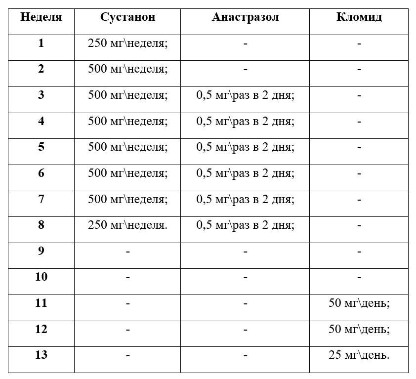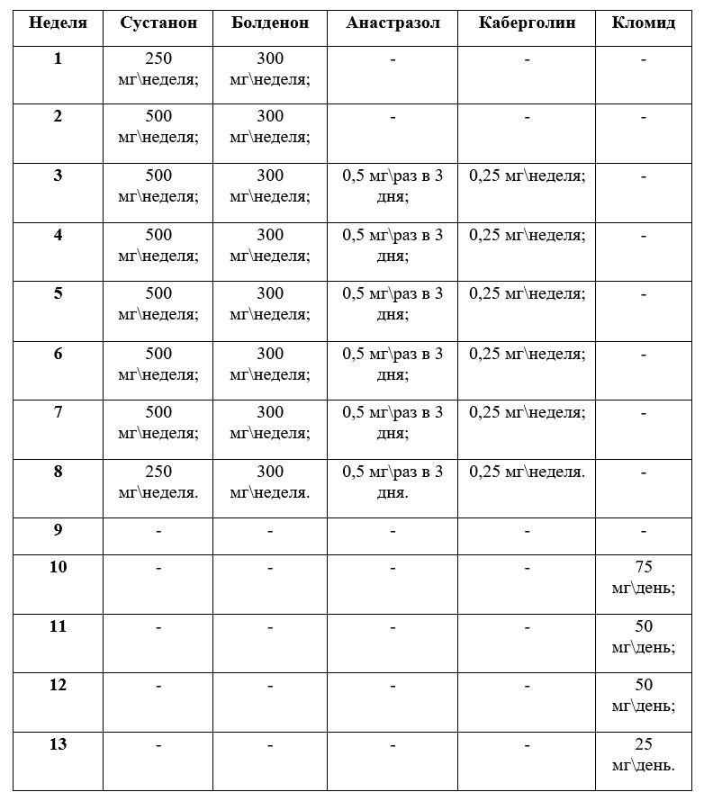 И соло, и комбинированный курс рассчитаны на 8 недель, с дальнейшним выходом на ПКТ. Помните, чем дольше курс и чем выше недельные дозировки, тем больше вероятность получения побочных эффектов.