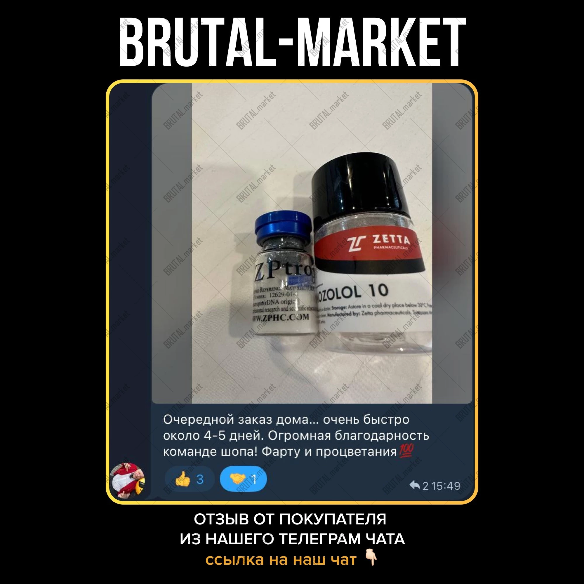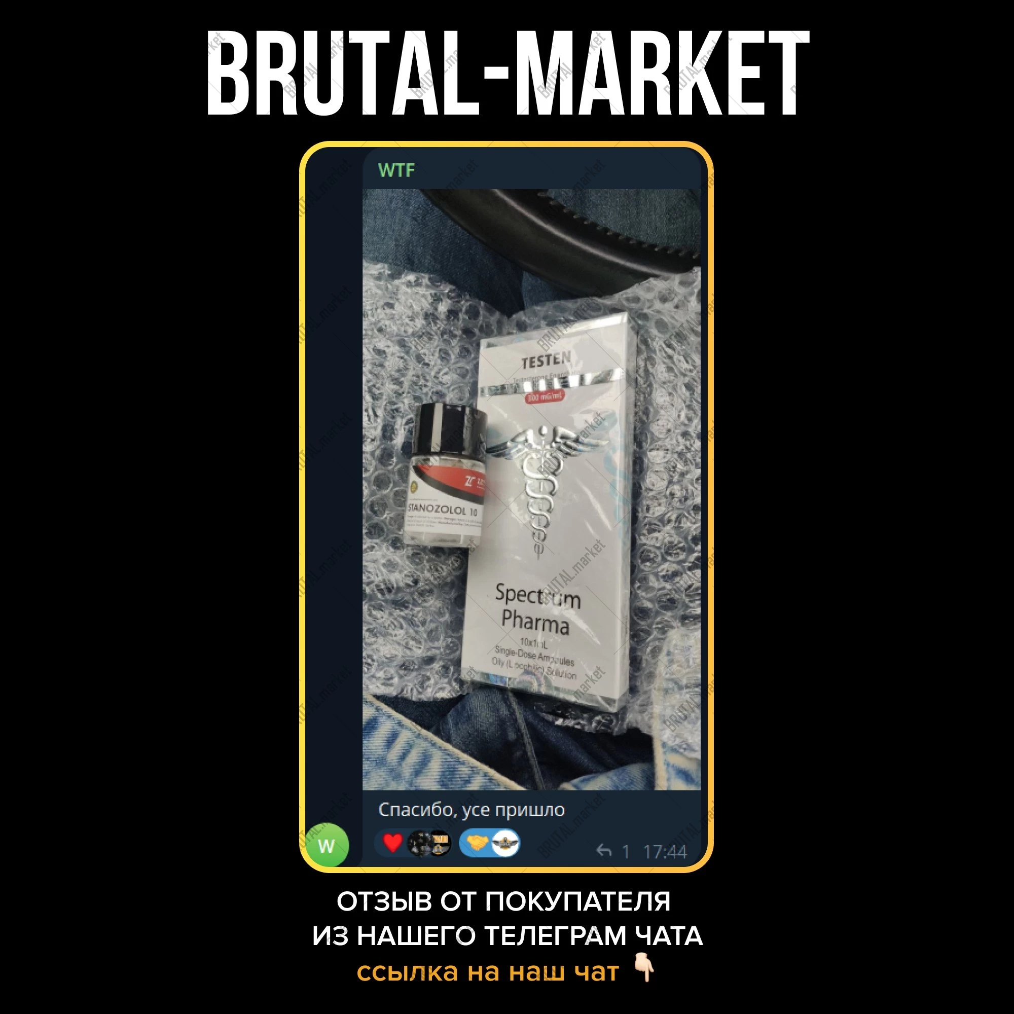 Магазин BrutalMarket хочет предложить Вашему вниманию очень широкий спектр ассортимента качественной, безопасной и недорогой фармакологии, которая доступна в наши дни. Для этого не нужно ходить и искать рецепт на аптечные стероидные препараты. Вы можете произвести покупку интересующего Вас товара прямо у нас на сайте. Мы доставляем качественную, уникальную, а главное – недорогую, фармакологию по всему Миру и всей России.