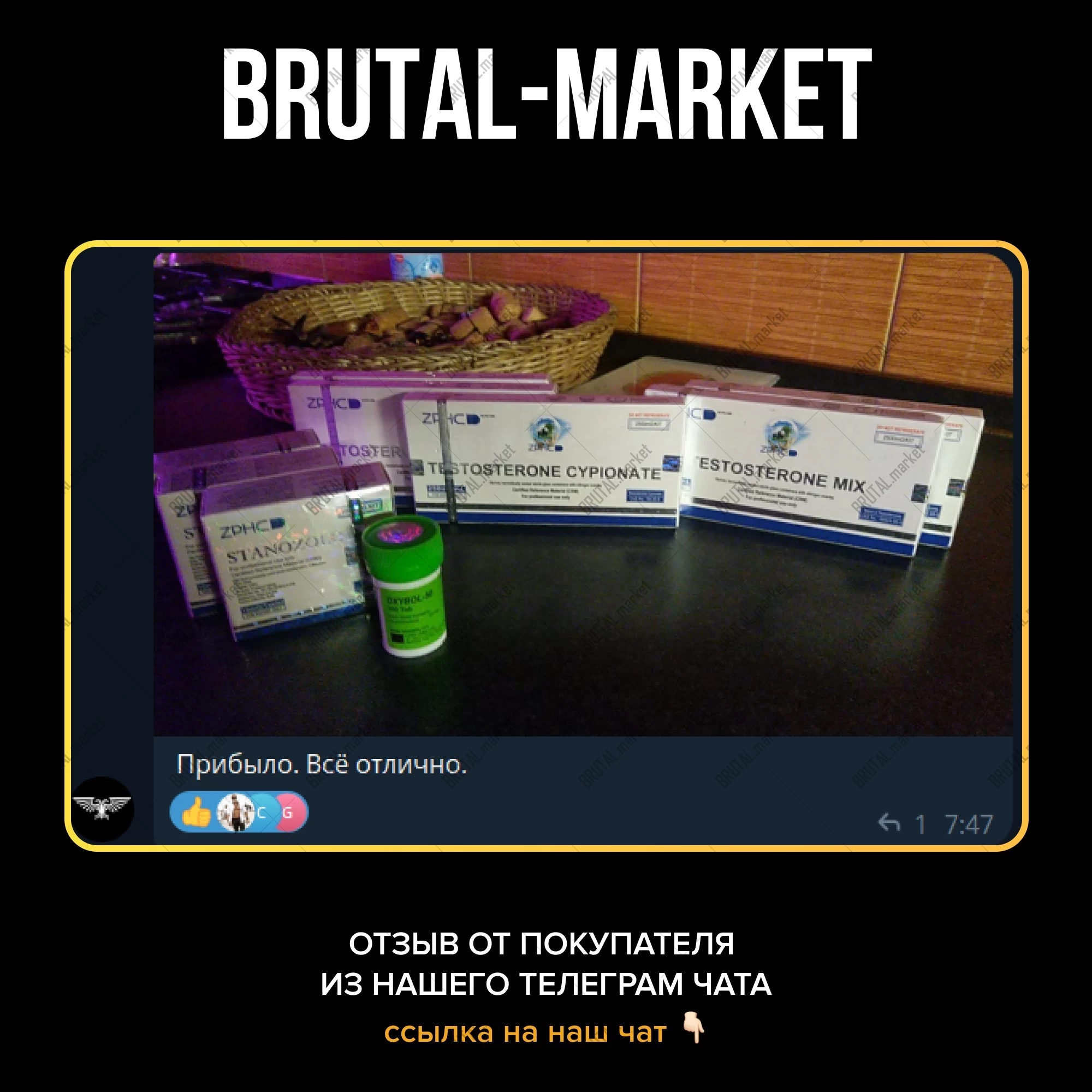 Если нужен качественный и оригинальный препарат, наш магазинБрутал Маркет рад предложить его вам. Оформите заявку и мы доставим препарат по указанному адресу.