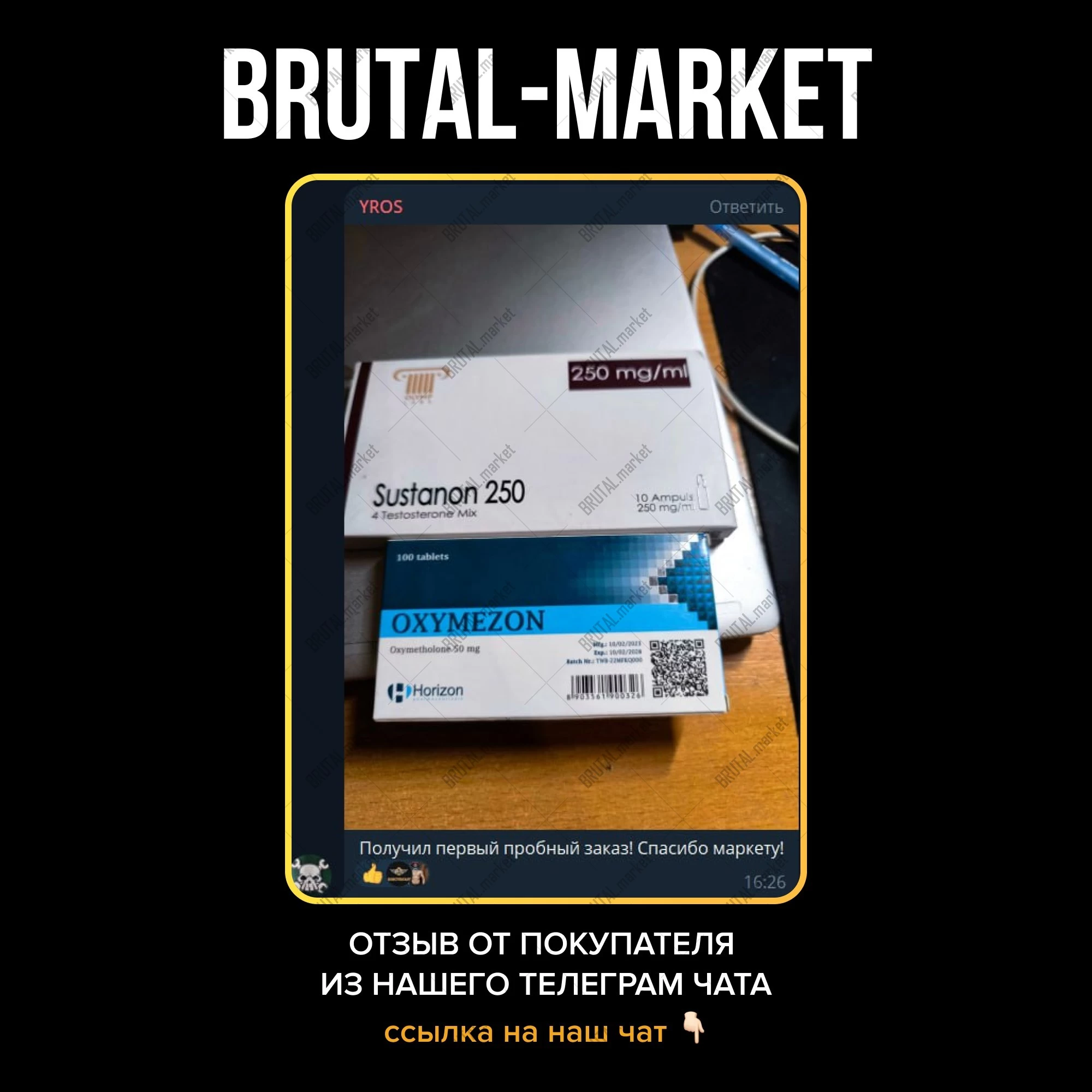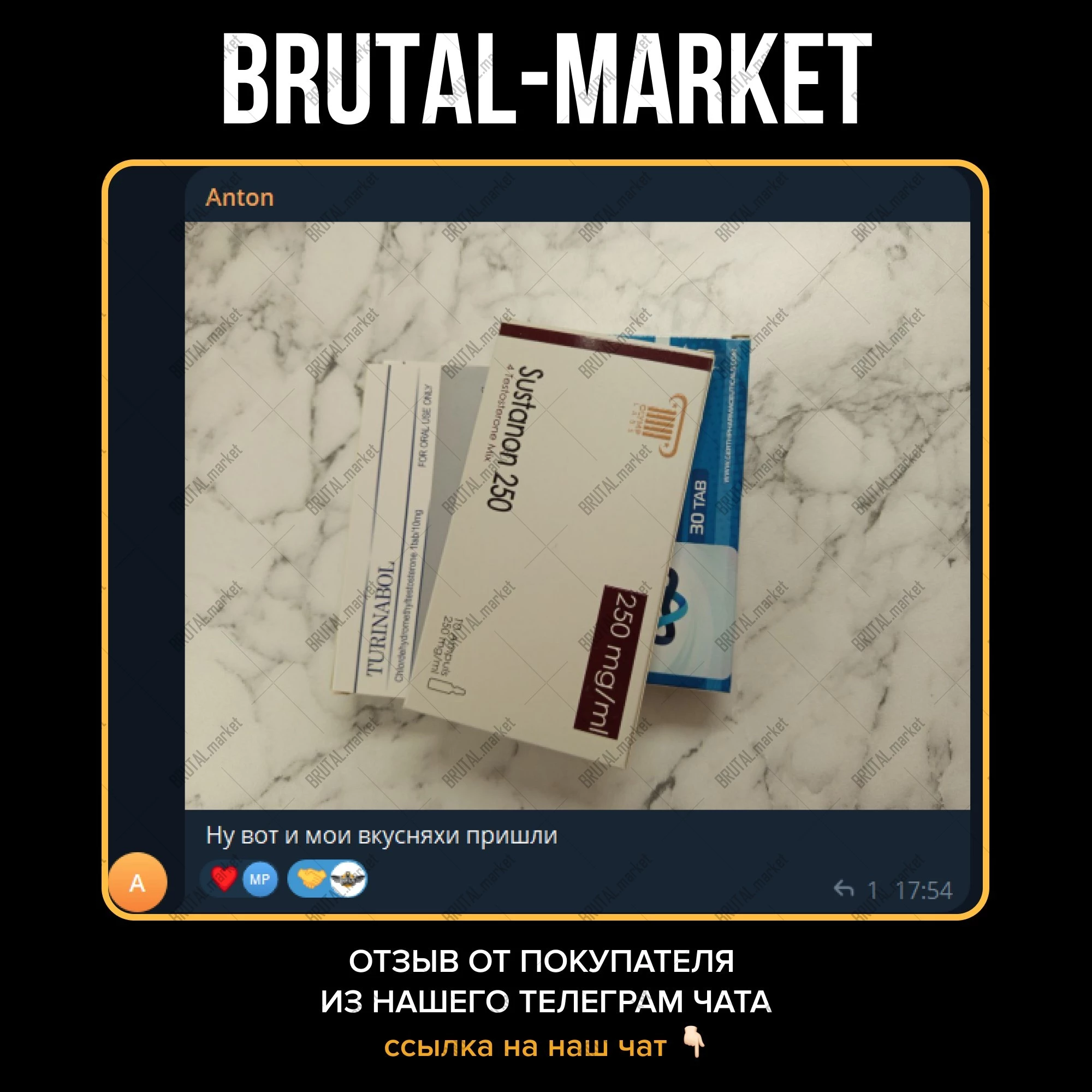 Но команда Brutal Market не требует специальный рецепт при покупке препарата и любой желающий имеет возможность приобрести Сустанон по доступной цене, с доставкой по всей России и всему Миру.
