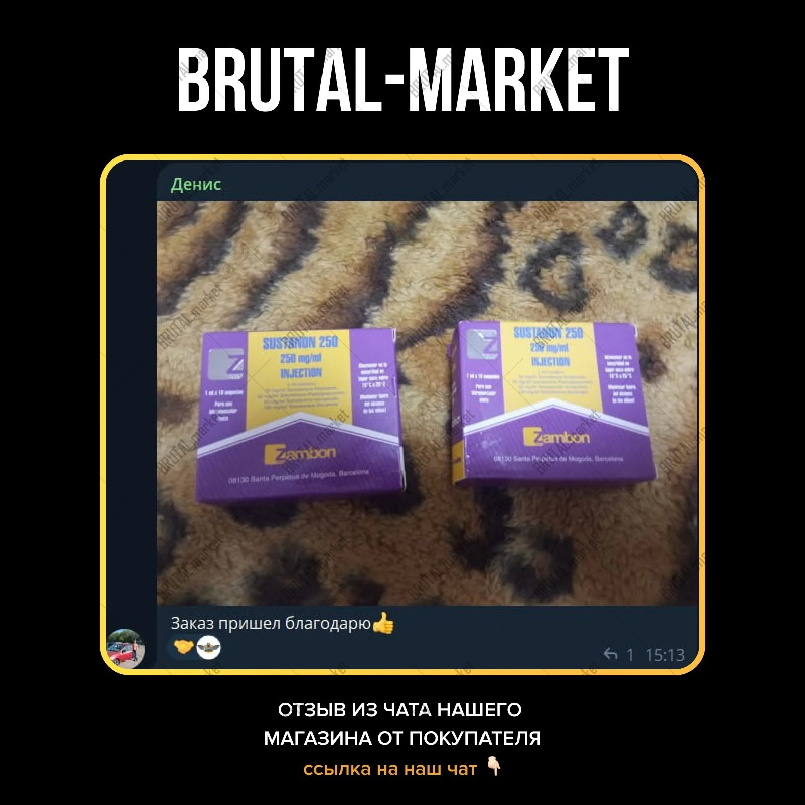 Но команда Brutal Market не требует специальный рецепт при покупке препарата и любой желающий имеет возможность приобрести Сустанон по доступной цене, с доставкой по всей России и всему Миру.