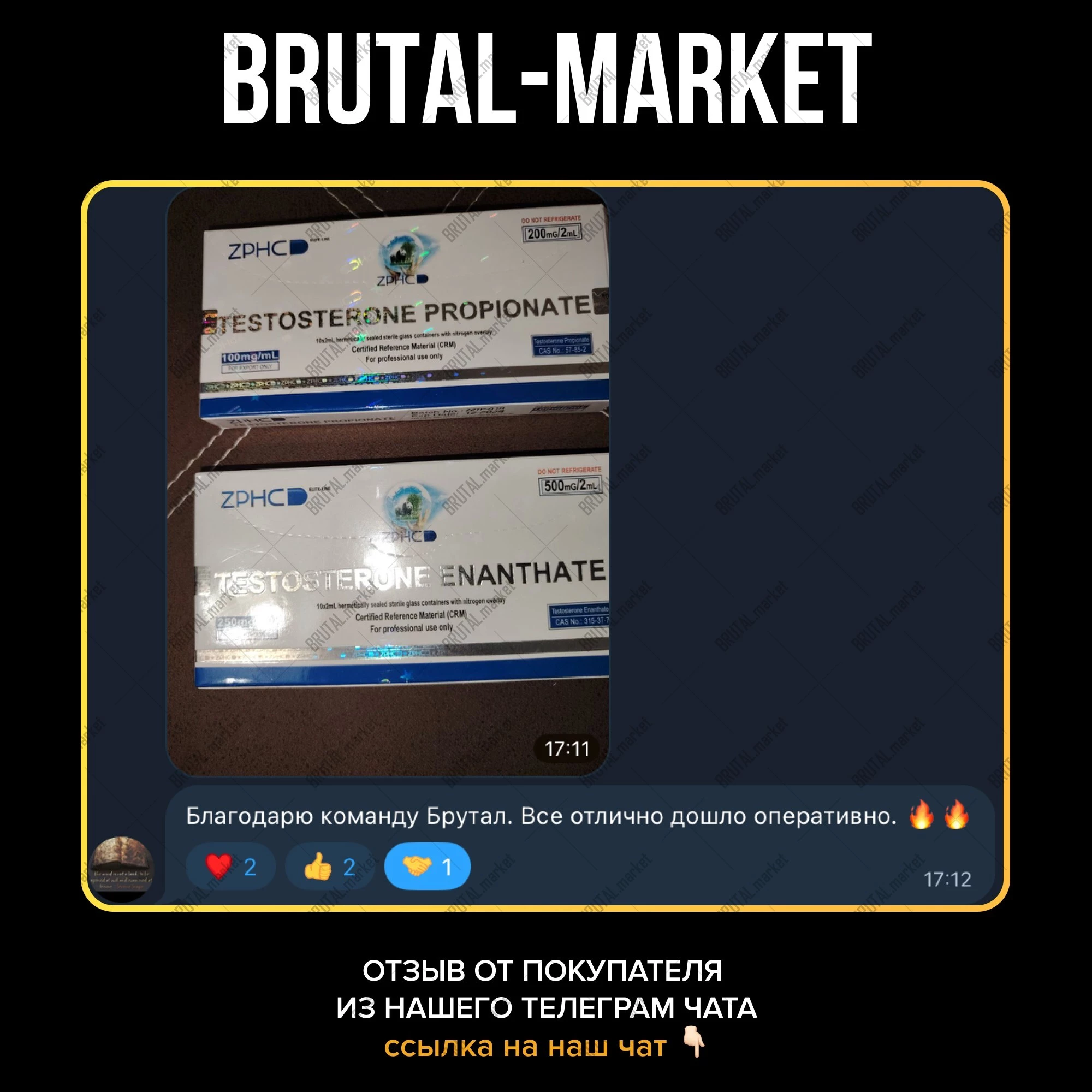 Купить Тестостерон Пропионат по оптимальной цене и с абсолютной гарантией конфиденциальности вы сможете в нашем интернет-магазине Брутал Маркет. Но, необходимо учитывать, что, сколько в результате будет стоить стероид - зависит от производителя.