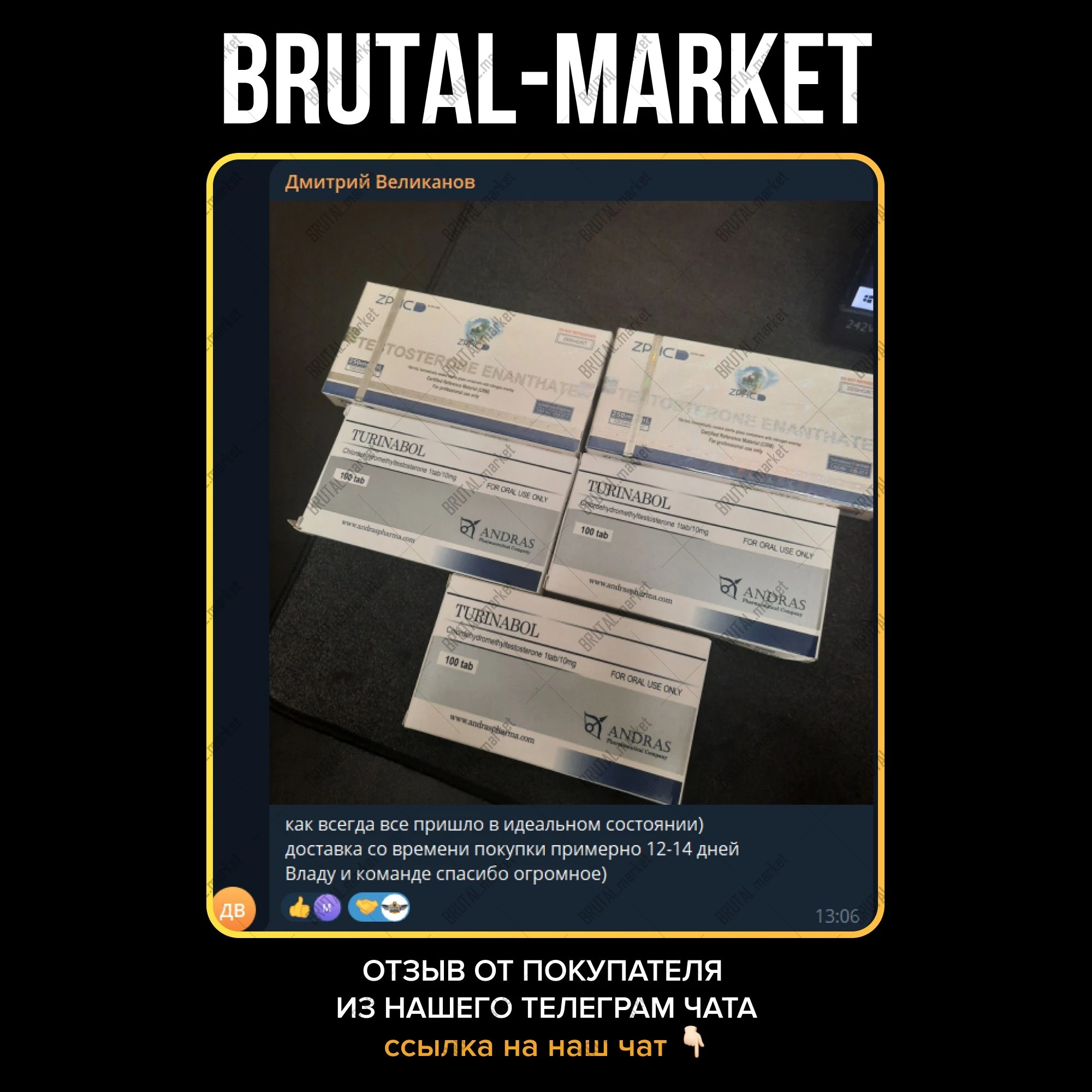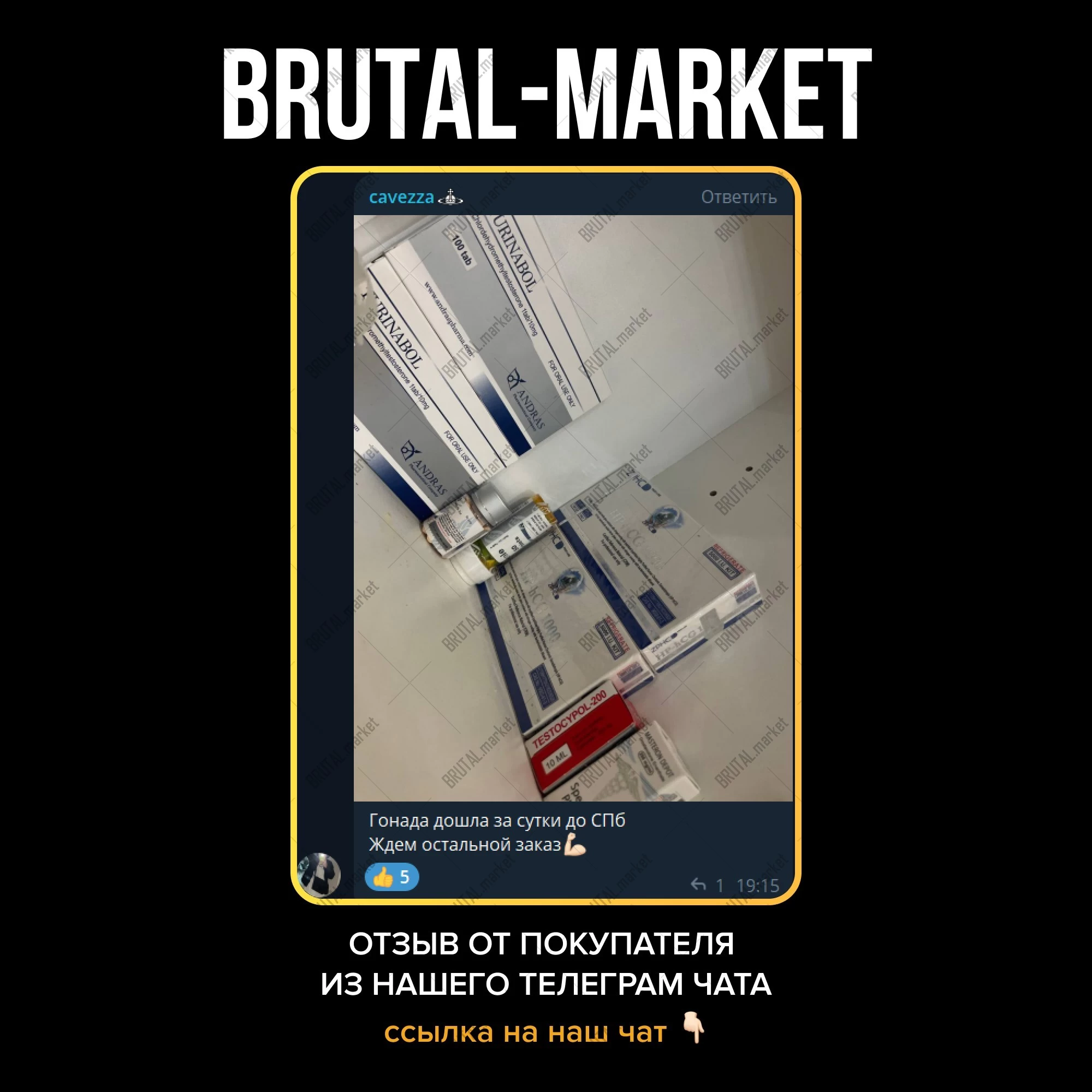 Ярко выраженный рост сухой массы, без задержки жидкости, с минимальным феноменом отката - купите на официальном интернет-магазине Brutal Market. Подробности по поводу доставки и оплаты товара в Москве, по РФ и Миру уточняйте в соответствующих разделах или в телеграмме Админа - @brutalmarket.